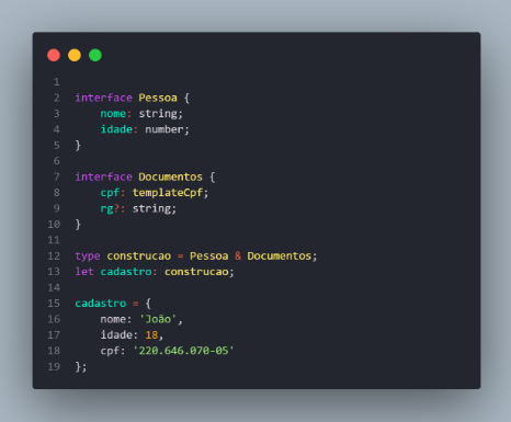 É possível criar um tipo novo a partir da união de dois ou mais tipos diferentes usando o operador “|”.