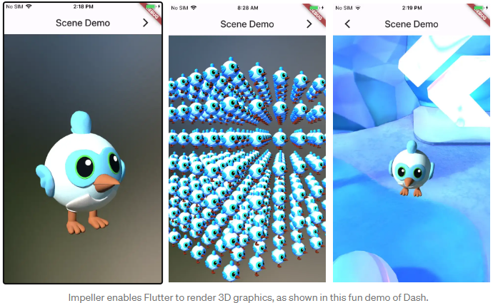 - A Impeller será a nova engine otimizada para o Flutter, com mais flexibilidade e controle gráfico. Animações complexas a 60 fps.