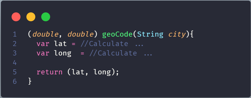 Neste caso, podemos estar retornando múltiplos valores, Tuplas. Abordagem já existente em outras linguagens, como no C#, e agora foi agregada ao Dart 3.