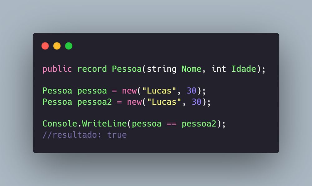 Como você pode ver, o Record C# é uma ótima ferramenta, pois permite que desenvolvedores definam novos tipos de estruturas de dados.
