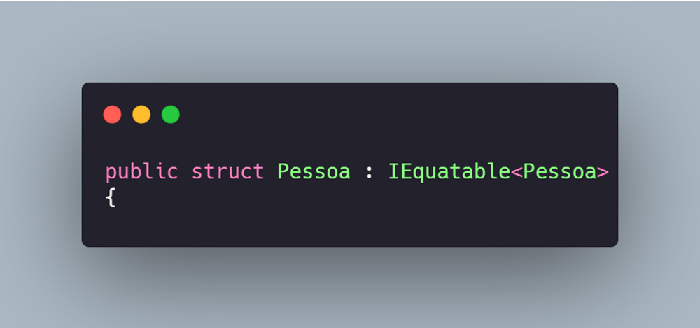 Mas, essa não é a única maneira de utilizar o Record, também podemos criar um Record struct, que é um objeto do tipo valor, uma struct que também implementa a interface IEquatable. Quando utilizado dessa maneira, o objeto criado não é imutável por padrão, mas podemos utilizar o readonly record struct para criar objetos imutáveis.